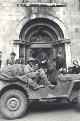 Allied soldiers in front of the Duomo (Archivio Stato Cantone Ticino)