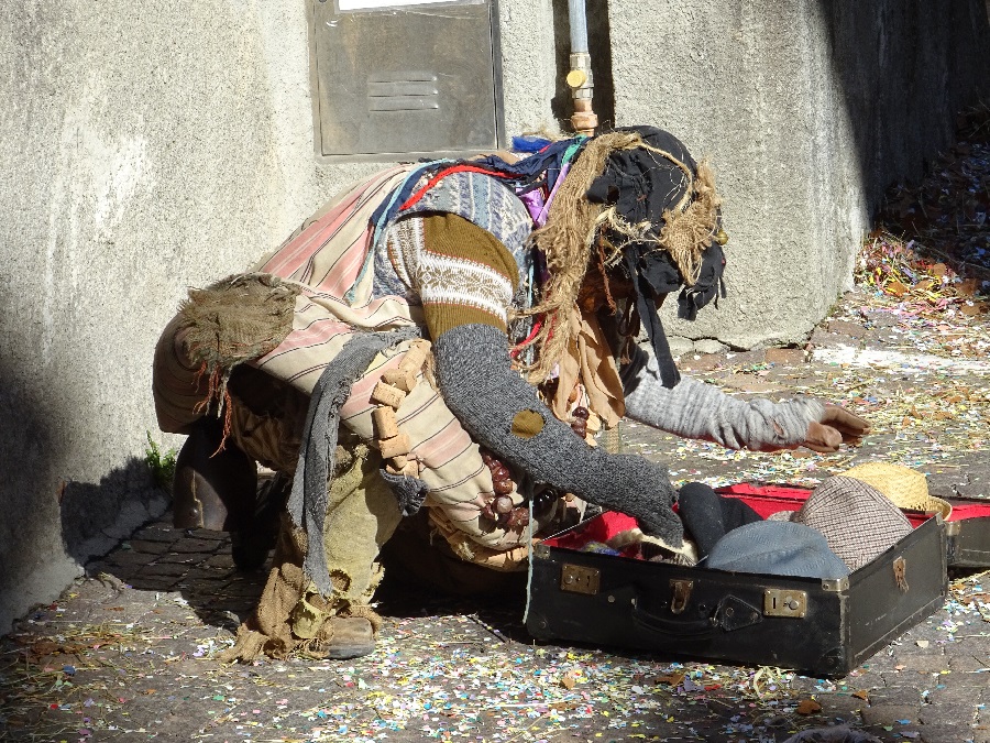 A Brut with suitcase ‘selling’ one hat to wear on top of another