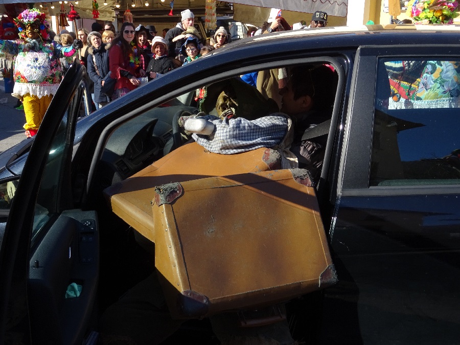 A brut forces his way into a car with suitcases