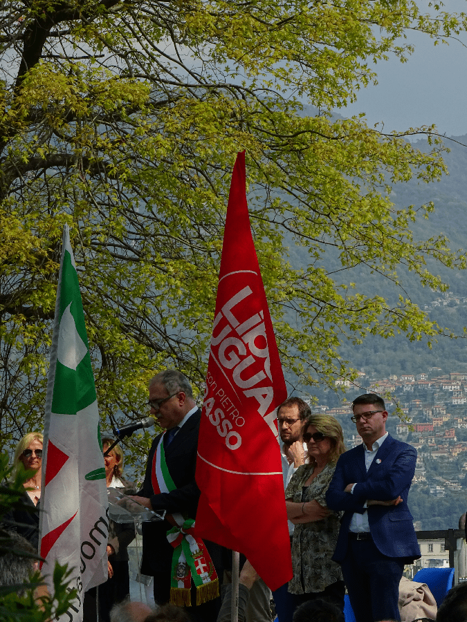 Como’s Mayor addresses the rally celebrating Liberation Day 2018