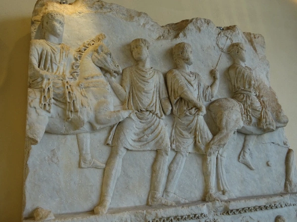 Carved marble denoting the good life for young Como residents in the Roman era – a day out hunting.