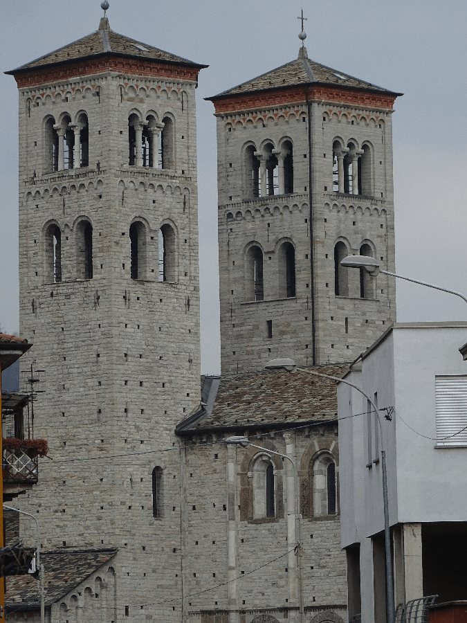 The paired bell towers of the Basilica Sant’Abbondio in Como – Romanesque masterpiece of the Maestri Comacini.