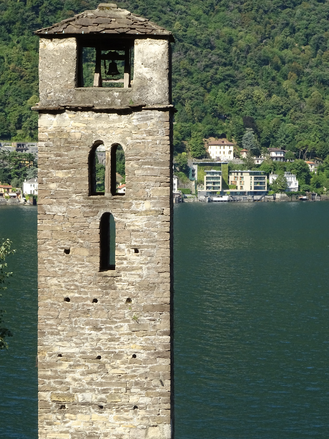 Bell tower of San Martino Church, Careno with Laglio on the other side of the lake