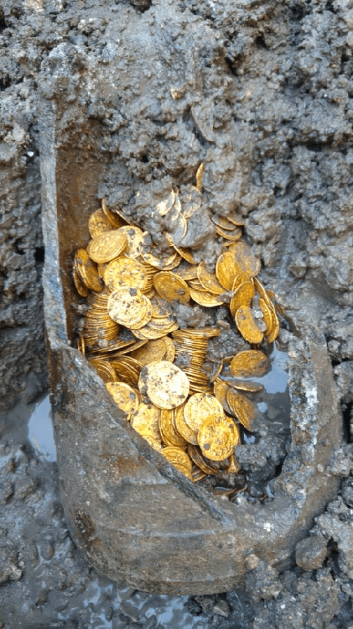 Roman Gold from 5th century AD found recently during rebuilding work at the Cressoni theatre on Via Diaz, Como.