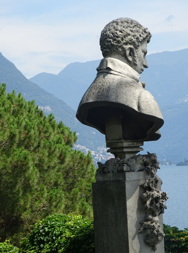 The bust of Ugo Foscolo in the gardens of the Villa del Grumello