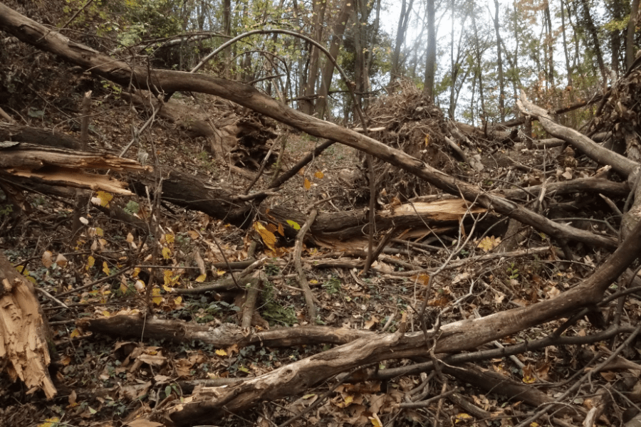 These fallen trees provide a challenge along your route but ar to be found only in one area