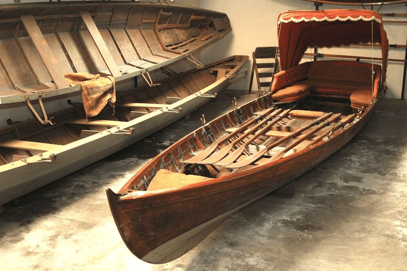 For the scenes to be shot on the lake at Azzano di Mezzegra, the film crew have hired three ‘Inglesine’ – the traditional oar driven water taxis of old. This example is housed in the Museo Barca Lariana in Pianello del Lario.
