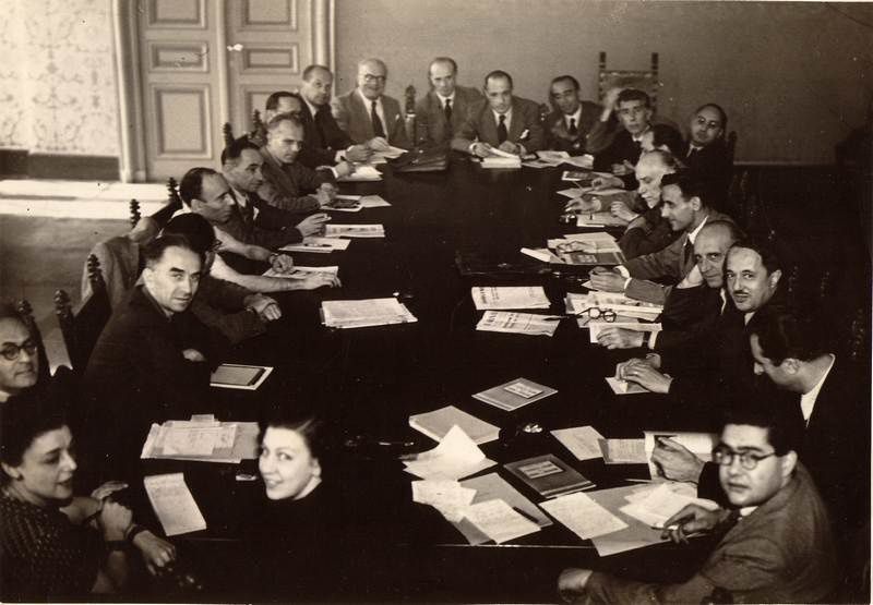 Early meeting of the Committee for National Liberation North Italy (CLNAI). Apart from the two women in the foreground, all other members of this opposition coalition against the nazifascists were men. While their work of political and military co-ordination was vital to the liberation movement, Ginevra preferred direct action.