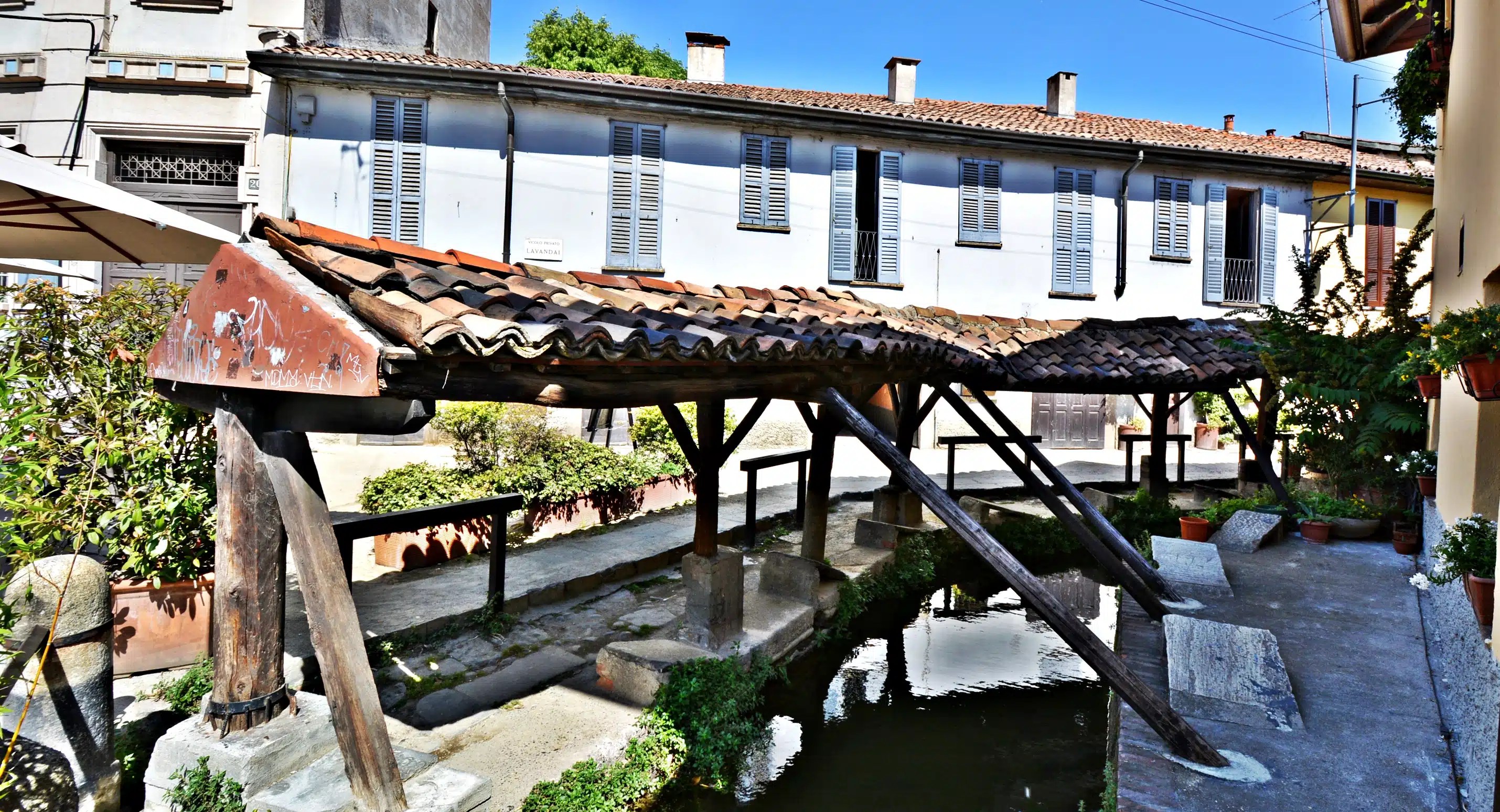 Whilst most users of the wash houses were women, this was not exclusively so. For example the use of the lavatoio in the Vicolo dei Lavandai alongside Milan’s Naviglio Grande was reserved to members of the Confraternità Lavandai di Milano. This society was set up in the 18th century with Saint Anthony of Padua as their patron saint and its members were only men. The lavatoio itself is now registered as a national monument forming just one of the hundred wash houses that used to exist alongside Milan’s three major canals – the Grande, Pavese and Martesana. Around the corner from the lavatoio there is a traditional Milanese restaurant called ‘El Brellin’ which is the name in dialect of the wooden structure on which the washers would perch lined up alongside the stone slabs for scrubbing. The restaurant occupies the site of a ‘drogheria’ which used to sell the soap and scrubbing brushes used by the lavandai. The men were only replaced by women during the last war. The wash house became purely ornamental after the 1950s.