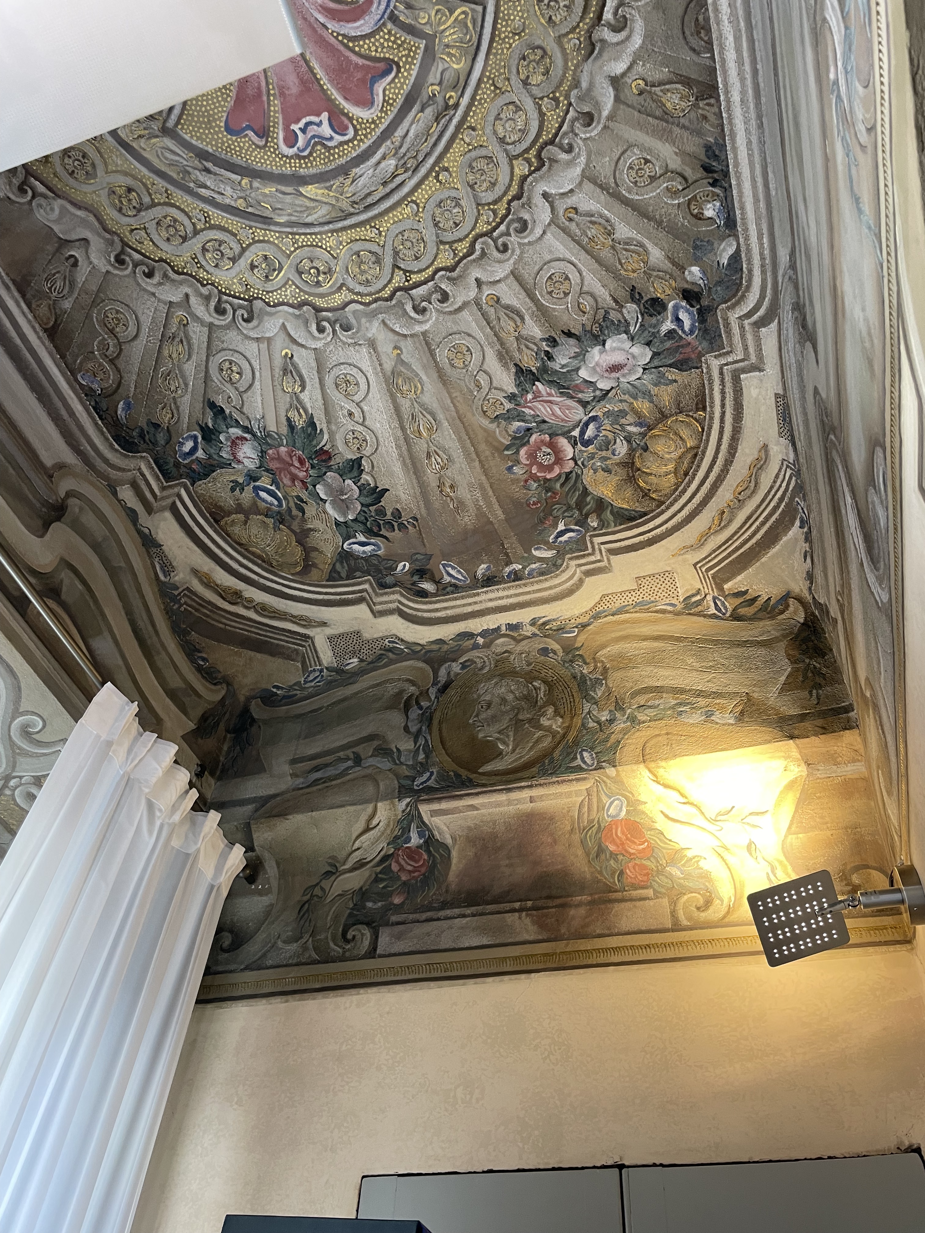 The decorated ceiling of the bedroom in the Palazzo Olginati Rovelli at No. 56, Piazza Volta where Garibaldi spent the night on May 27th 1859 after the successful Battle of San Fermo