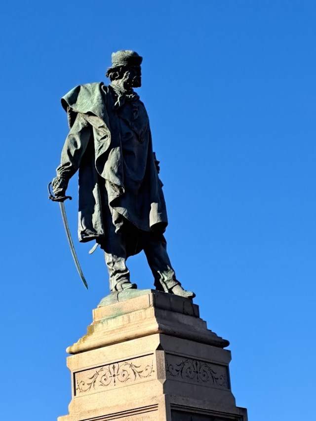 Statue of Giuseppe Garibaldi in Piazza Vittoria, designed by Vincenzo Vela who also designed one of the cemetery’s monuments.