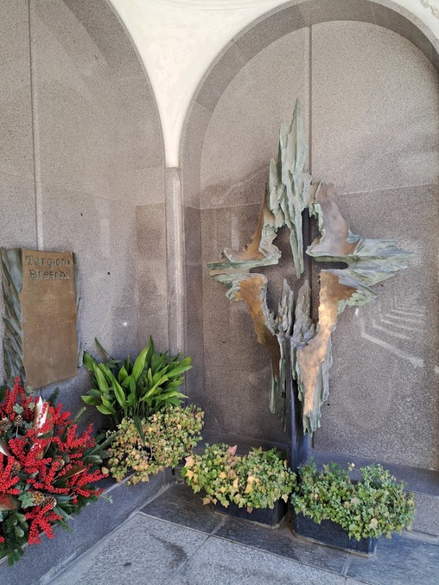 The grandson of the industrialist Francesco Somaini entombed under the ‘Pieta’ is a local sculptor who gained an international reputation and whose evolution of style from the figurative to the abstract can be traced here within the Monumental Cemetery. An example of his early work can be seen in the memorial to the Bettoni family in Chapel No. 7.