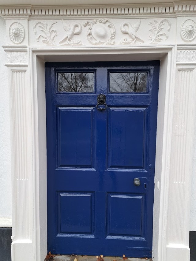 The pelican is seen with its beak next to its breast. An ancient legend has it that pelicans are known to wound their own breast when food is short so as to feed their young. Thus the pelican came to symbolise self-sacrifice as in Jesus shedding his blood to save humanity. They also came to symbolise resurrection since, as with Jesus, the pelican survived its act of self-sacrifice. The very same image of the self-sacrificing pelican (but this time seen feeding her young) can be seen in the photograph below taken of a door to a house within Norwich’s Cathedral Close.