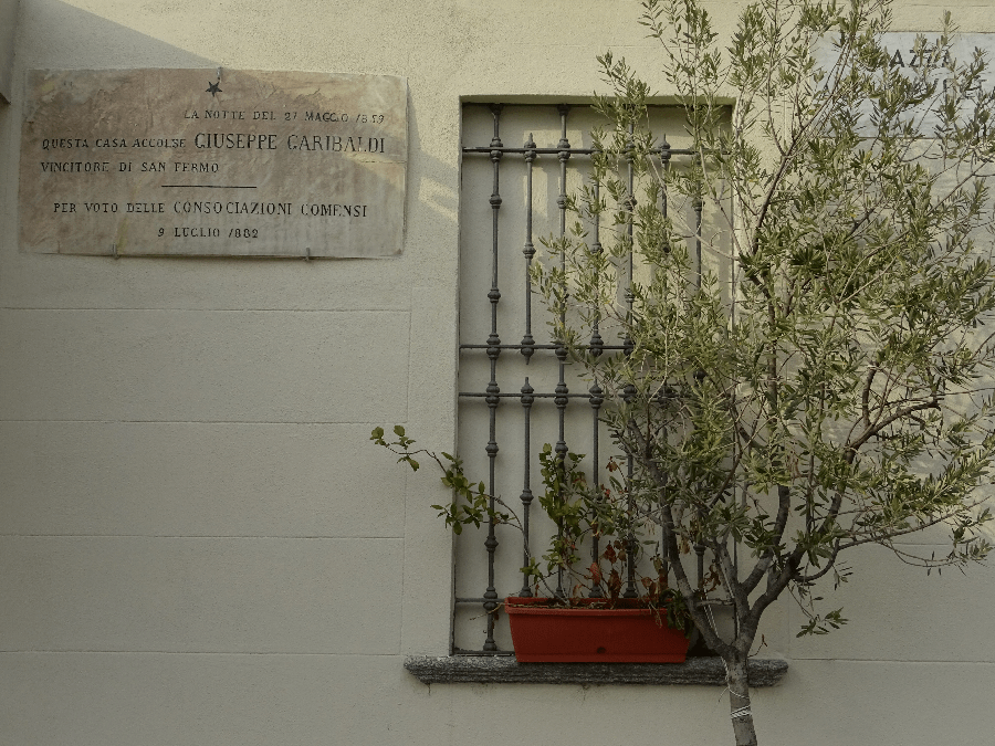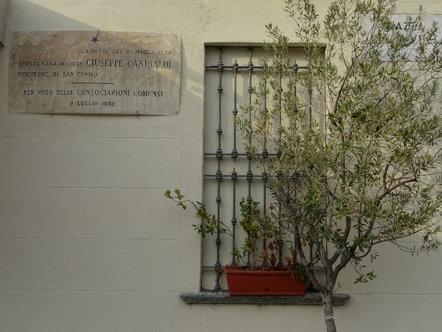 The plaque denoting where Garibaldi stayed in Como on the night of his victory at San Fermo. The building is in Piazza Volta.