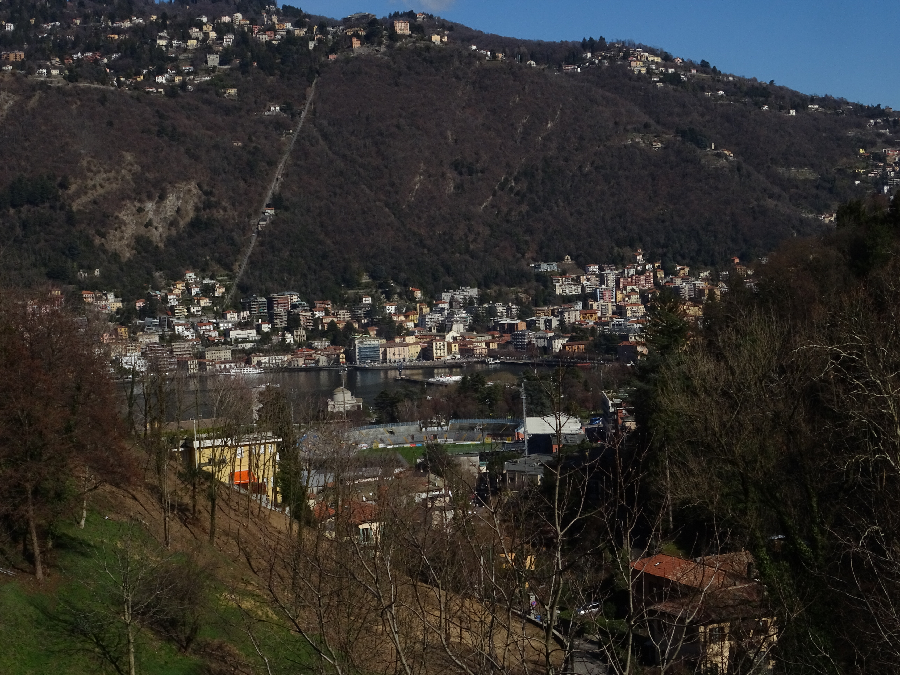 View from the top of Via Maggio 27 in the Valfresca looking across to Como, the funicular and Brunate.